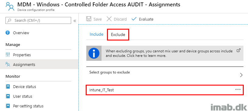 This is done to prevent conflicts in Intune. In this example, I have a specific group consisting of my test devices: