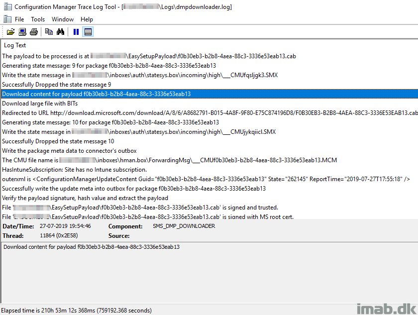 When the script is being successfully run, you will immediately notice activity in the dmpdownloader.log file on the site server: